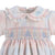 Our Noel Girl Dress captures the essence of the holiday season with delicate hand-smocked bows on the chest, made from stunning pastel tartan fabric. The Peter Pan ruffle collar and light pink piping add a lively, festive touch to this charming piece.